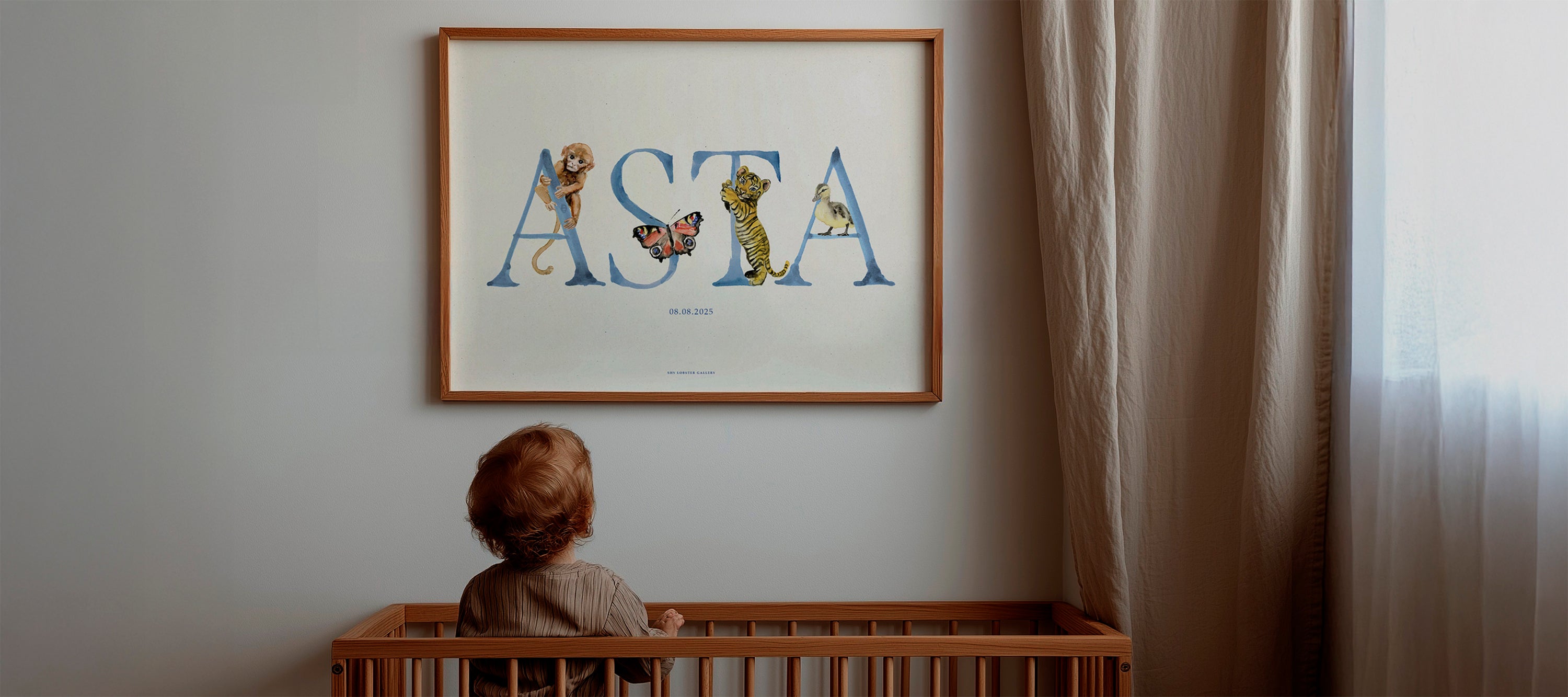 Byd de nyeste medlemmer velkommen med en unik navneplakat i akvarel.