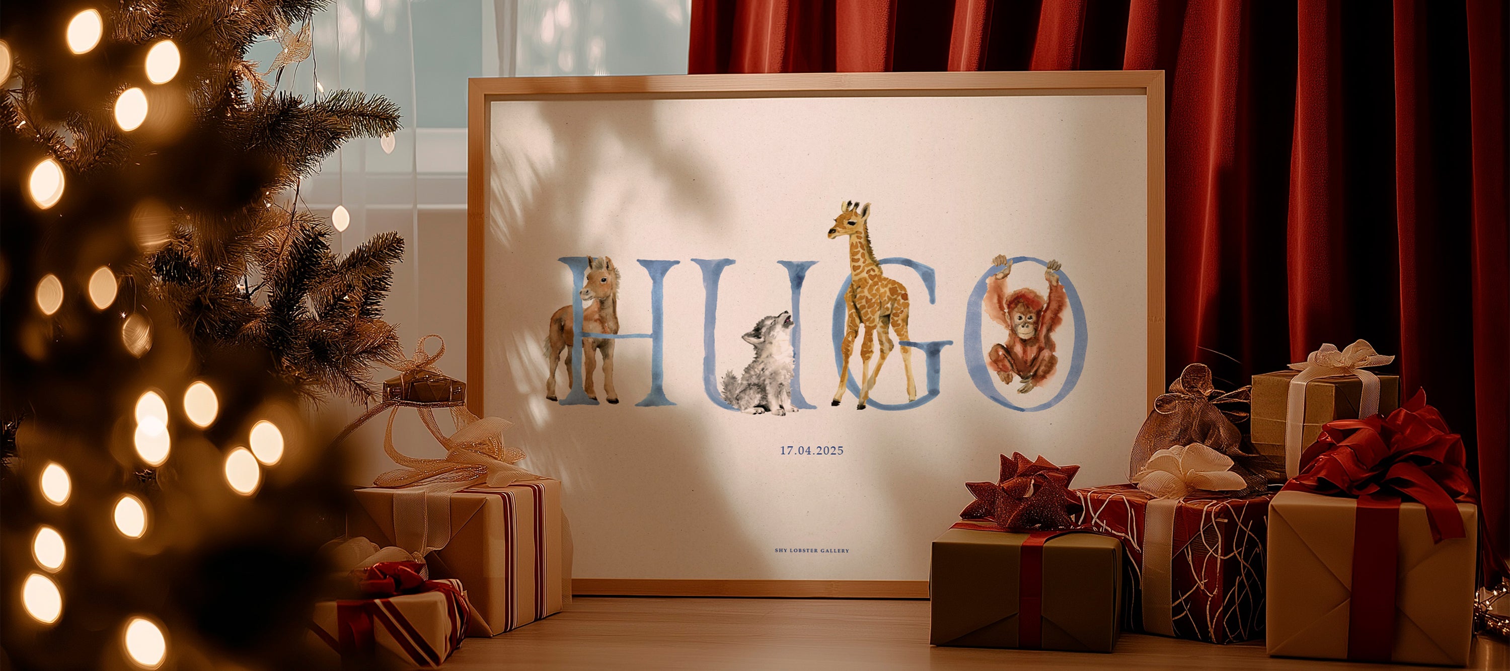 Vores nyeste tilføjelse: et smukt håndmalet personlig navneplakat.